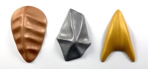 Suitable for opaque, metallic, or translucent clay sheets, or as a way to enhance blended, textured, or patterned veneers, Bioforming can elevate the look of a flat sheet within many different silhouette shapes and a wide array of textural motifs.